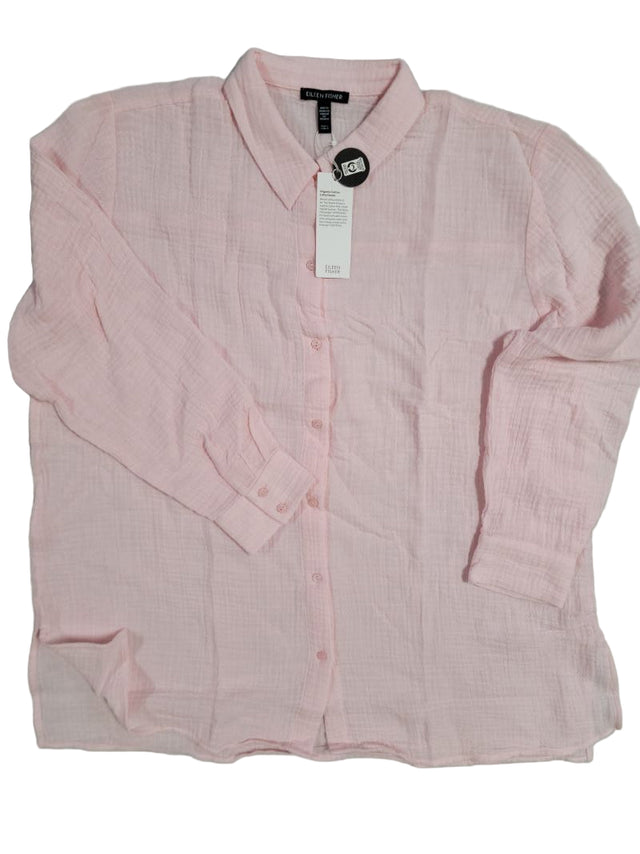 EILEEN FISHER Organic Cotton the Lofty Gauze Classic Collar Shirt in Soft Pink | Size L