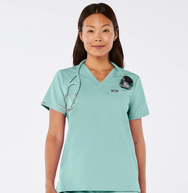 The FIGS Seaglass Medium scrub set delivers professional-grade performance with technical fabric engineered for healthcare environments. This precision-tailored ensemble features antimicrobial properties, four-way stretch construction, and moisture-wicking capabilities to maintain comfort during extended shifts. The distinctive seaglass colorway offers a refined aesthetic while maintaining compliance with most facility dress codes. Reinforced stitching and strategically placed pockets ensure durability and functionality for demanding clinical settings.
