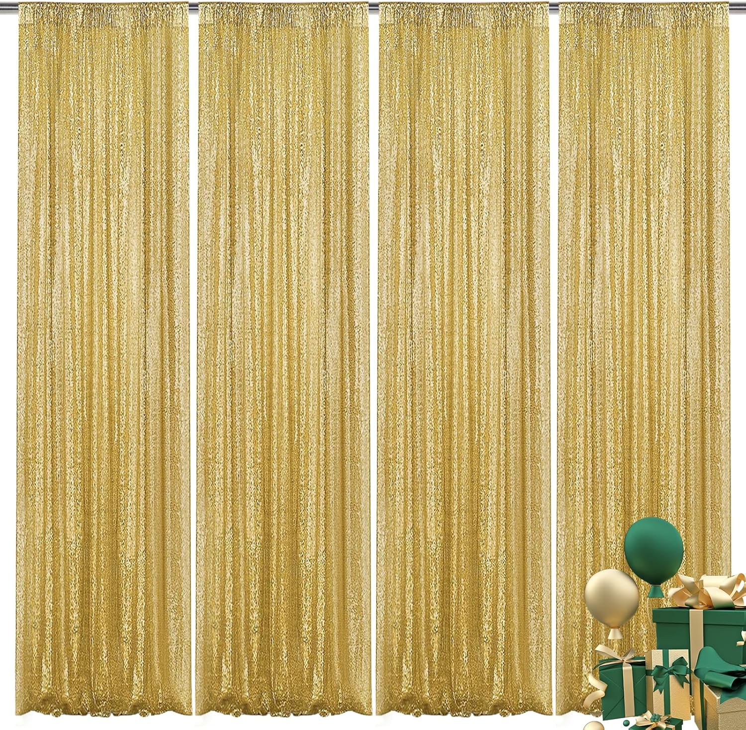 • Package Include: 4Pcs 2FT Wide X 8FT Height sequin backdrop curtain with a 4-inch wide rod pocket on the top, which is easy to install.