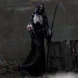 - Premium Life-Size Halloween Animatronic: Khronos, the rotting reaper, will terrify your trick-or-treaters with his evil towering presence, glowing red eyes and chest, tall scythe, and red light-up skull prop