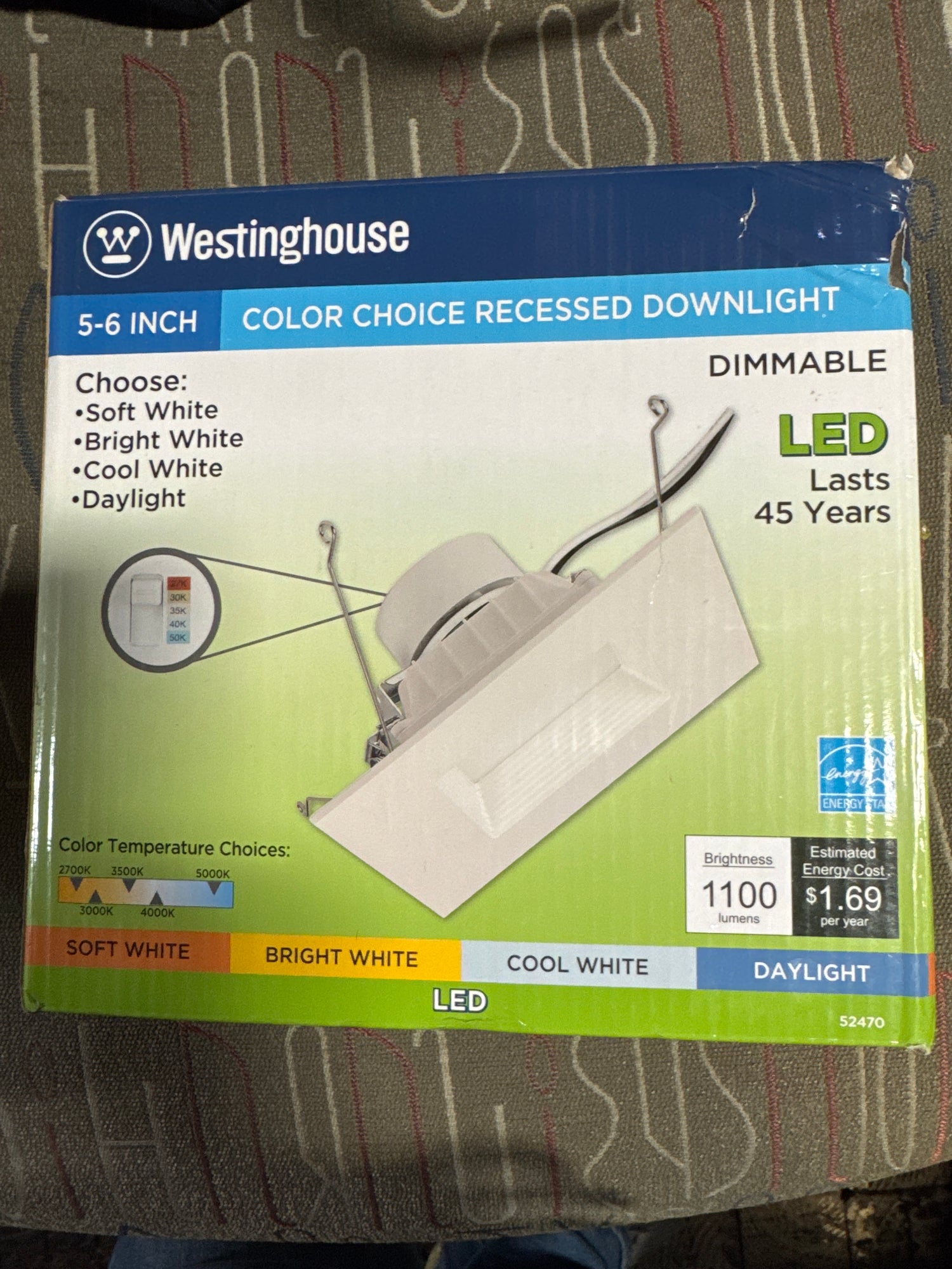 Westinghouse 5247000 14 Watt (100 Watt Equivalent) 5-6-Inch Square Recessed LED Downlight with Color Temperature Selection, Dimmable, Energy Star, Medium Base, White Trim is backordered and will ship as soon as it is back in stock.