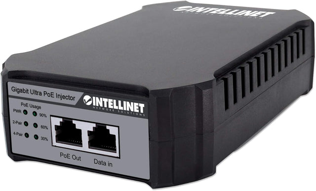 The Intellinet Network Solutions Gigabit Ultra PoE Injector provides up to 95 W using all four pairs of twisted-pair network cabling to support IoT applications such as lighting, sensors and building automation. Nurse call systems require 30 to 50 watts of power. Point-of-sale card readers & printers need up to 60 watts. Lighting fixtures and controllers require 40 to 50 watts. Some motorized IP cameras need more than 70 watts. The IEEE 802.3bt Ultra PoE standard is an excellent solution for bringing power to these critical systems. As many new IEEE 802.3bt powered devices enter the market, you'll be ready for them with an Intellinet Network Solutions Gigabit Ultra PoE Injector. The Intellinet Network Solutions Gigabit Ultra PoE Injector helps you connect your IEEE 802.3af/at-compliant products to a non-PoE LAN switch port. The injector can be used to connect a wireless access point, IP phone, network camera or any IEEE 802.3af/at-powered device (PD) to a switch. It's no longer necessary to run AC power lines for your wireless access point, network camera or IP phone. Simply connect the PoE Injector to the LAN switch port, and use the existing network cabling to deliver DC power as well as transfer data. Once DC power is connected to your networked equipment through the network cabling, the Intellinet Network Solutions PoE Injector ensures that your products are protected from power problems like short circuits (short GRND), current overloads and high voltages.