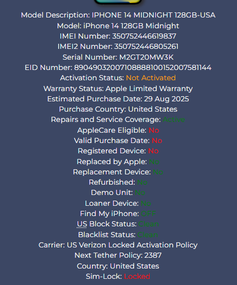 iPhone 14 128GB Midnight - Verizon - New, Sealed
