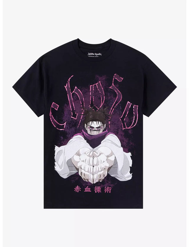 Big brother of the year! Practice your Blood Manipulation with your Jujutsu Kaisen fave. This tee features Choso posed to release Piercing Blood, with his name up top in a foil print. "Red Blood Manipulation Technique" is written in Japanese below.