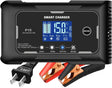 - 🚌【Safety Charging】Adopt ABS flame-retardant shell, fireproof, anti-shock, corrosion resistance, sturdy and durable, built in circuit protection, spark free system, reverse polarity protection, over-charge, over-voltage and over-temperature protection. The intelligent LCD display shows the charging status and battery status, so that you can charge more at ease. Please read the instructions carefully before proceeding.