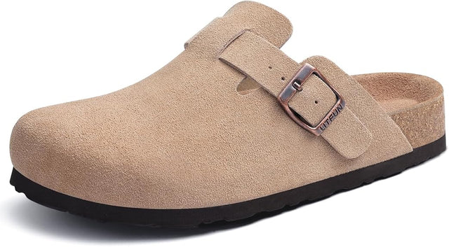 Litfun Women's Genuine Suede Clogs Soft Footbed Leather Potato Shoes Comfort Slip On Clogs with Arch Support Size 6
