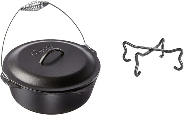 Lodge Cast Iron Dutch Oven with Iron Cover, Pre-Seasoned, 9-Quart, Black - 4-in-1 Camp Dutch Oven Tool is backordered and will ship as soon as it is back in stock.