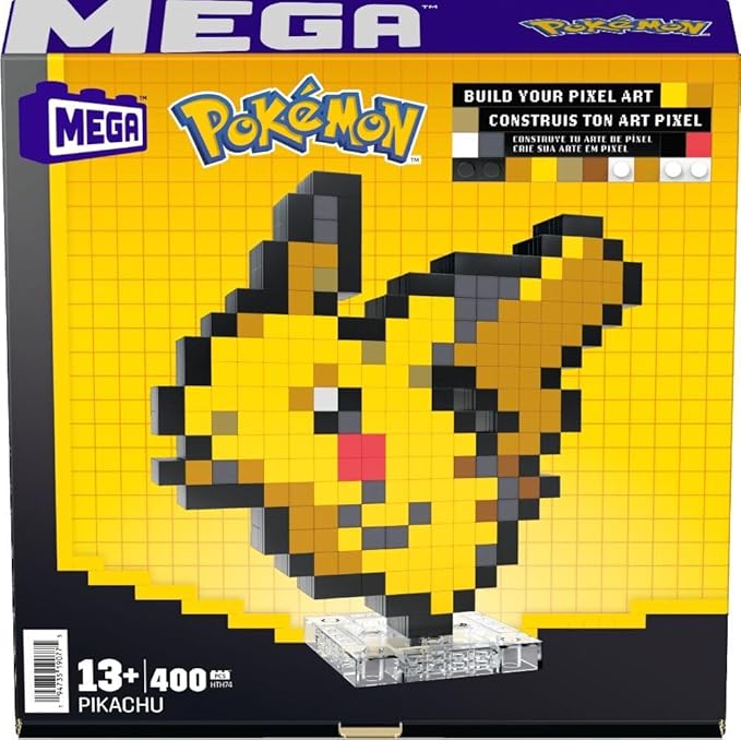 Mega Pokémon Pikachu Construction Set, Articulated Figure, Retro Pixelated Style, 15 cm, Wall or Table Decoration, 400 Pieces, Collectable, Children's Toy, Age 7 Years, HTH74 is backordered and will ship as soon as it is back in stock.