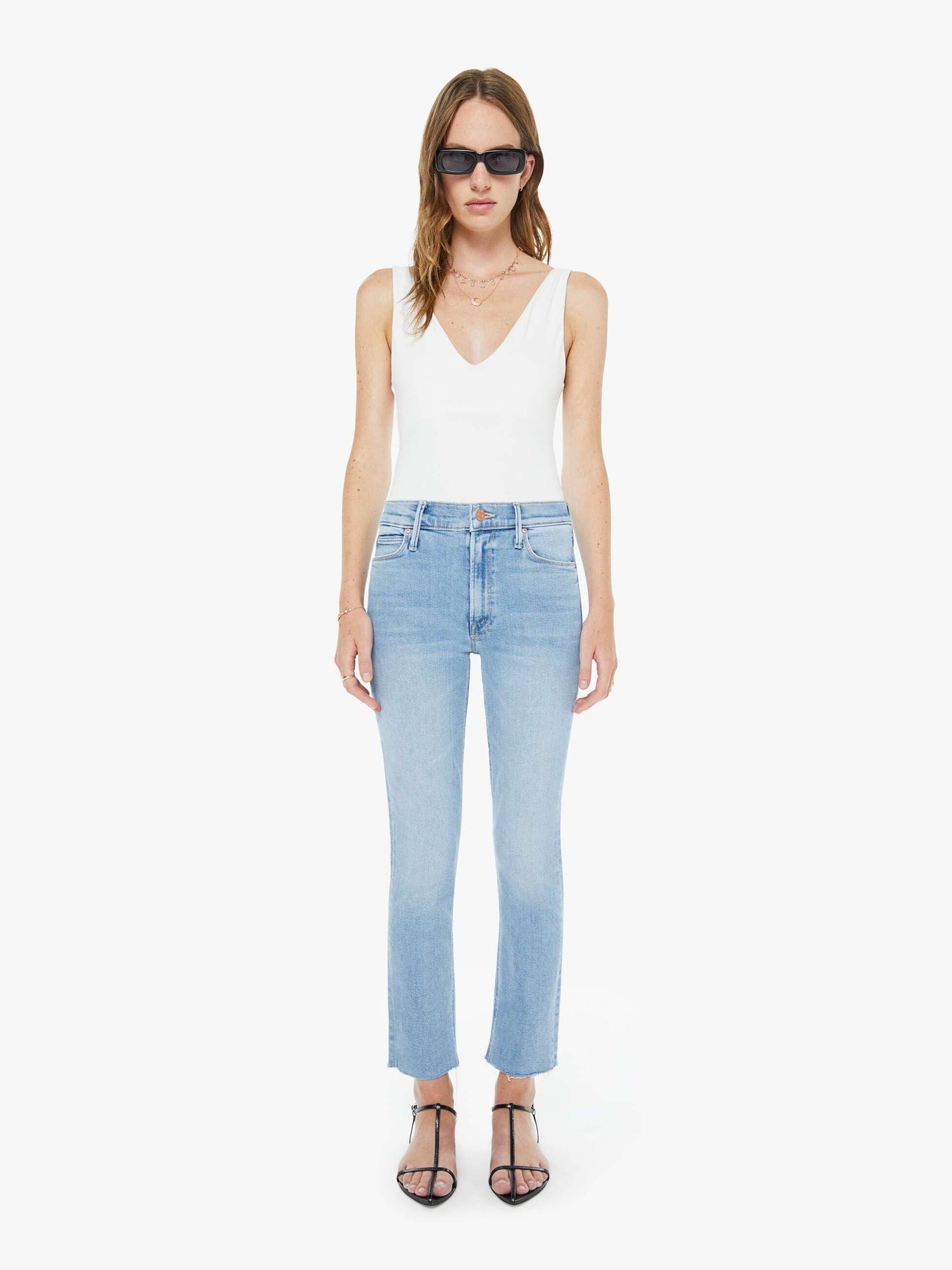 Mother The Mid Rise Dazzler Ankle Fray Size: 28 is backordered and will ship as soon as it is back in stock.