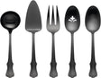 - 5-piece set includes large serving spoon, large pierced serving spoon, large serving fork, gravy ladle, and pie server