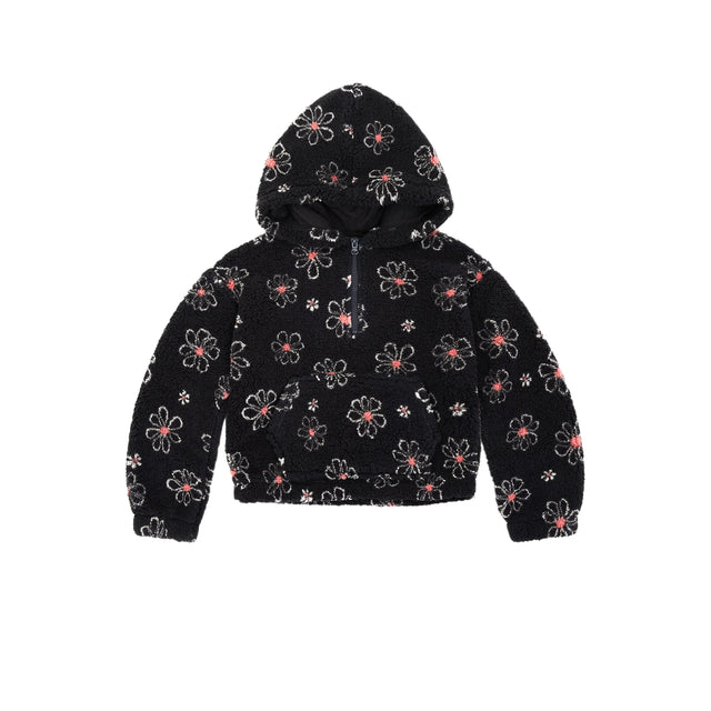 The Planet Gold Girls High Pile Fleece Hoodie offers cozy comfort for fall and back-to-school days. This long sleeve hoodie features a kangaroo pocket and quarter zip for added functionality. Soft and machine washable, it's easy to care for. Available in light pink, dark pink, green, cream floral print, and black floral print, there's a style to suit every taste. Crafted from 100% Polyester, this hoodie provides both durability and warmth.