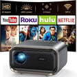 - Projector with Versatile Compatibility: This mini projector with WiFi and Bluetooth works with TV sticks to stream from Netflix, Amazon Prime, YouTube, etc. (no pre-installed streaming channels/apps; TV stick required for copyrighted content). It includes an HDMI cable for computer connections and supports diverse devices: Roku, laptops, PCs, USB drives, headphones, external speakers, smartphones, iPads, PS5, PS4.
