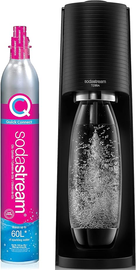 SodaStream Terra Sparkling Water Maker (Black) with CO2 and Dishwasher Safe Bottle