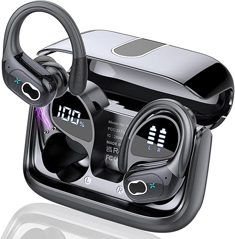 - 75 Hours Playtime and Dual LED Display: Running headphones provides up to 15 hours continuous using time on a single charge, portable charging case can charge the earbuds for 5-6 times, giving 75 hours of a total playtime. Whether on the road or in daily life, it will provide unparalleled convenience and smart experience. The dual LED display on earphones accurately display the remaining power of charging case and the charging progress of Wireless ear buds.