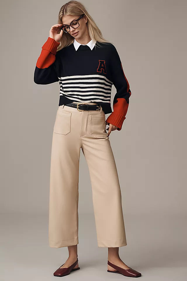 The Colette Faux Leather Crop Wide-Leg Pants by Maeve Size 29