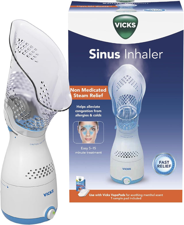Vicks Sinus Inhaler - Non-Medicated Steam Relief for Allergies, Congestion, Cough & Colds, Vocal Steamer, Soothes Nasal & Throat Passages, Works with VapoPads (1 Included), FSA & HSA Eligible
