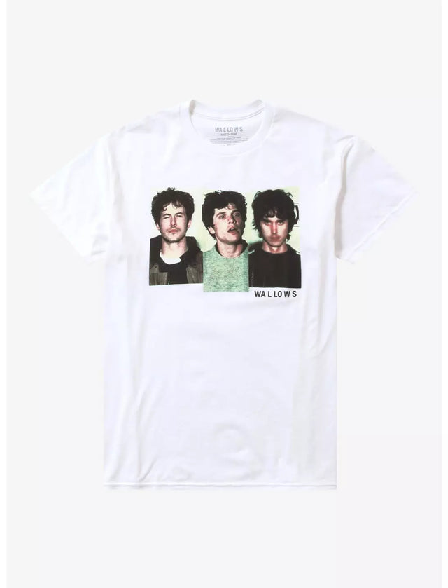 Show your love for Wallows with this crisp white tee featuring a moody photo strip of the band’s three members across the chest. It’s a low-key staple for fans who keep Model (2024) on repeat.
